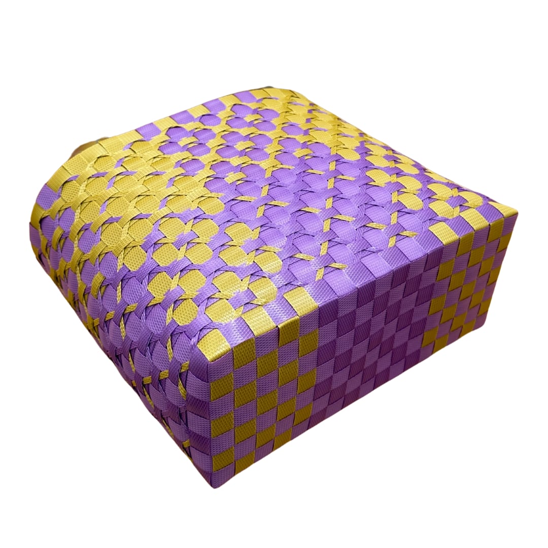 ブロック花模様(紫×からし)