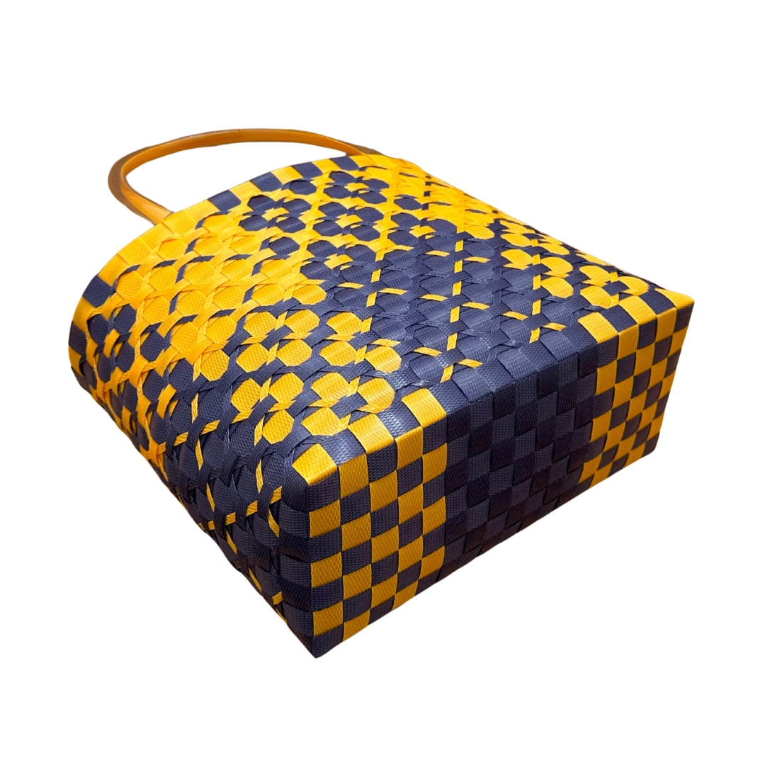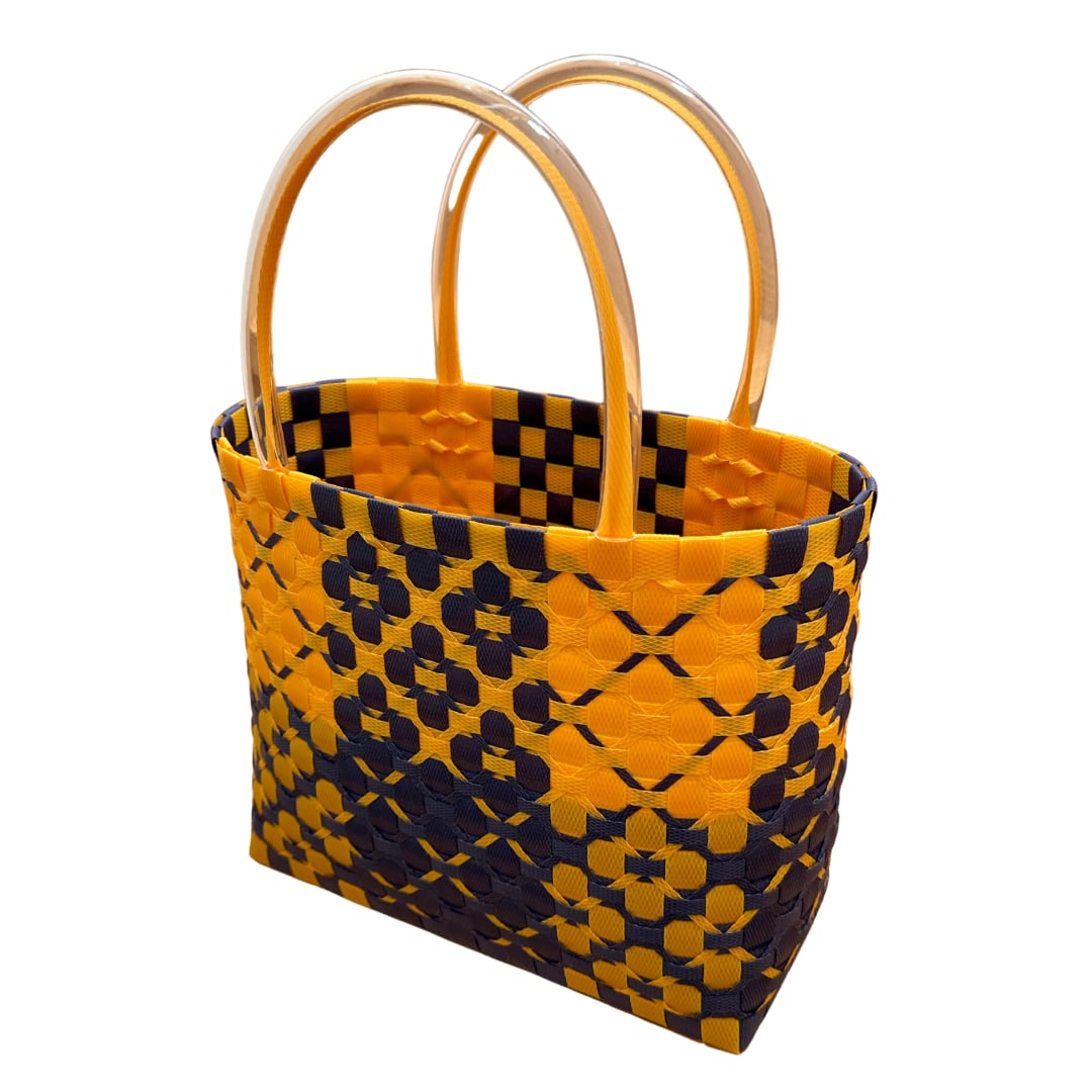 ブロック花模様(ネイビー×オレンジ)